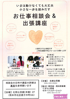 サポステ アレコレ お仕事相談会&ミニ講座を毎月第4木曜日に北部公民館(熊本市北区)にて開催しています。ぜひご参加ください。